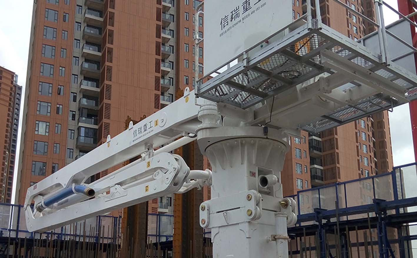 HG21AM-3R固定式液壓布料機(jī)·布料范圍廣。臂架結(jié)構(gòu)采用高強(qiáng)度鋼板制作,強(qiáng)度大,自重輕?!ふ麢C(jī)采用模塊化設(shè)計(jì),且模塊之間采用銷(xiāo)軸快速鏈接,拆裝方便,運(yùn)輸快捷?!た蛇x擇無(wú)線遙控或有線遙控操作方式,操作輕松方便?!るS爬升模架一起爬升,減少爬升工作量,提高效率。·液壓電氣元件采用國(guó)內(nèi)外知名品牌,性能穩(wěn)定。·采用45Mn2耐磨輸送管,提高輸送管壽命,減少換管次數(shù),提高生產(chǎn)效率。產(chǎn)品參數(shù)?&n
